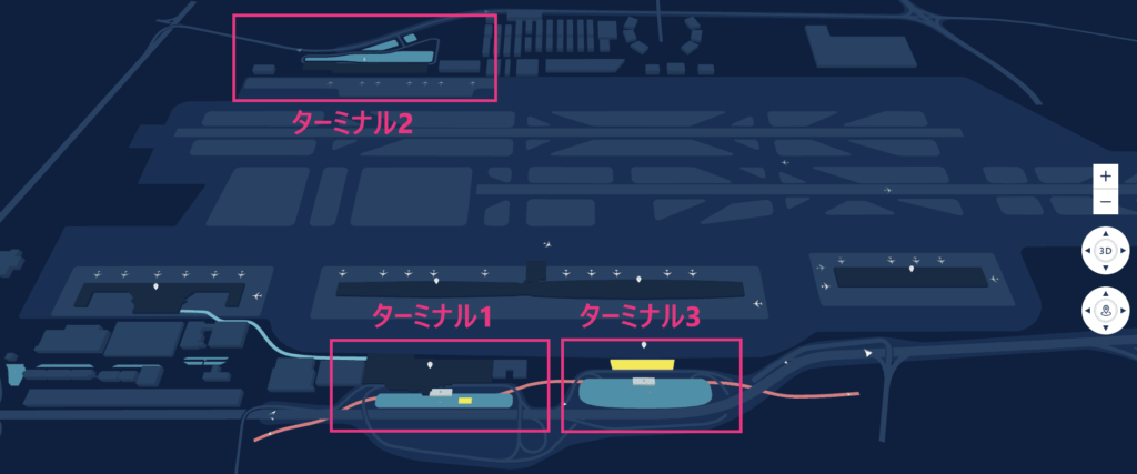 なお、ターミナルはゲートで表記されるケースもあります。ターミナル1はGATE-D、ターミナル2はGATE-F、ターミナル3はGATE-A・B・Cと表示されることもあるので、間違えないように気を付けましょう。